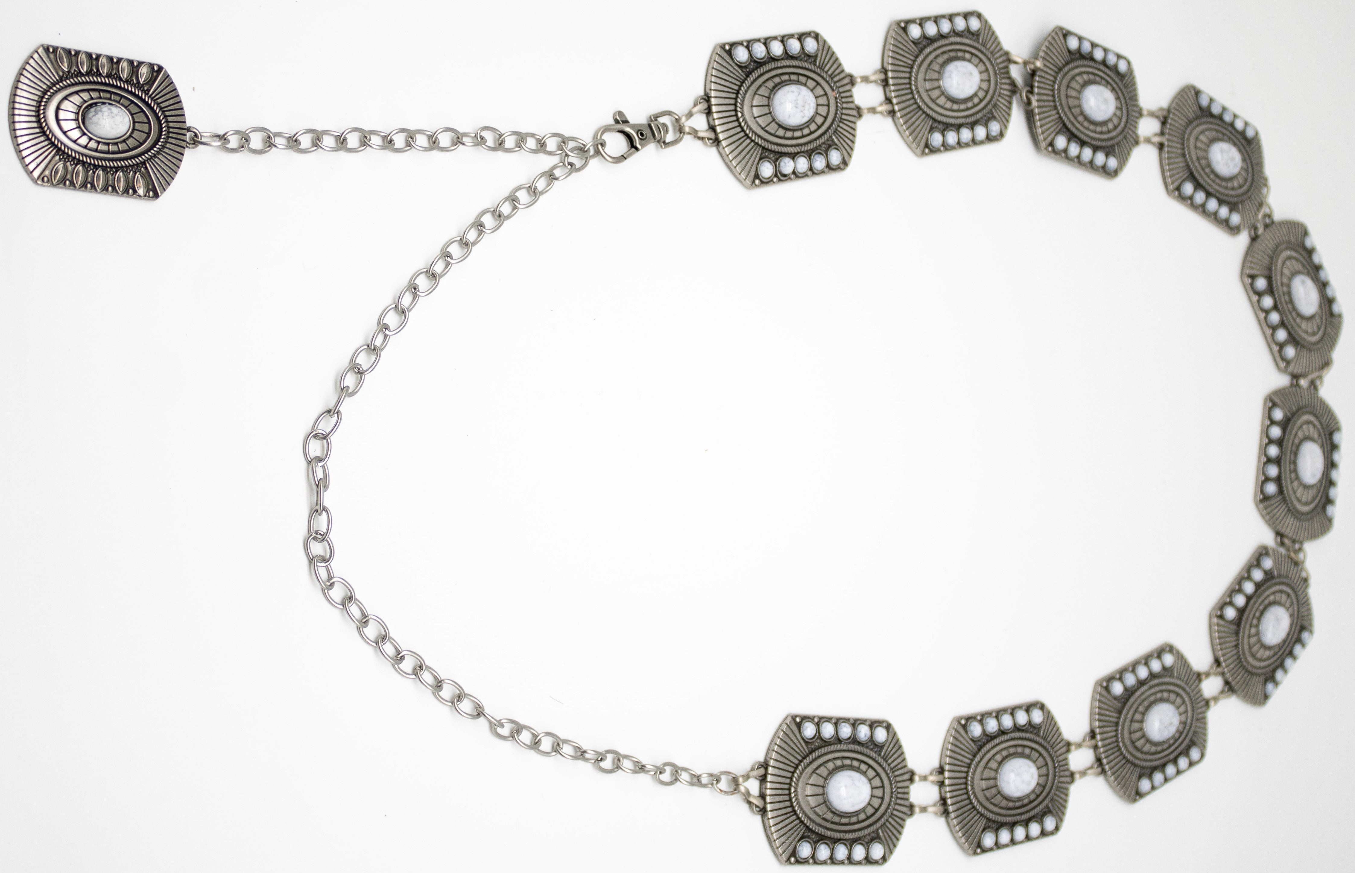 Western-style chain belt with metallic touches and vibrant colors.Made of stainless steel with western-style faux stone details. Perfect...Precio habitual $65.00 USDPrecio de oferta $65.00 USD Precio habitualPrecio unitario porAgotado -