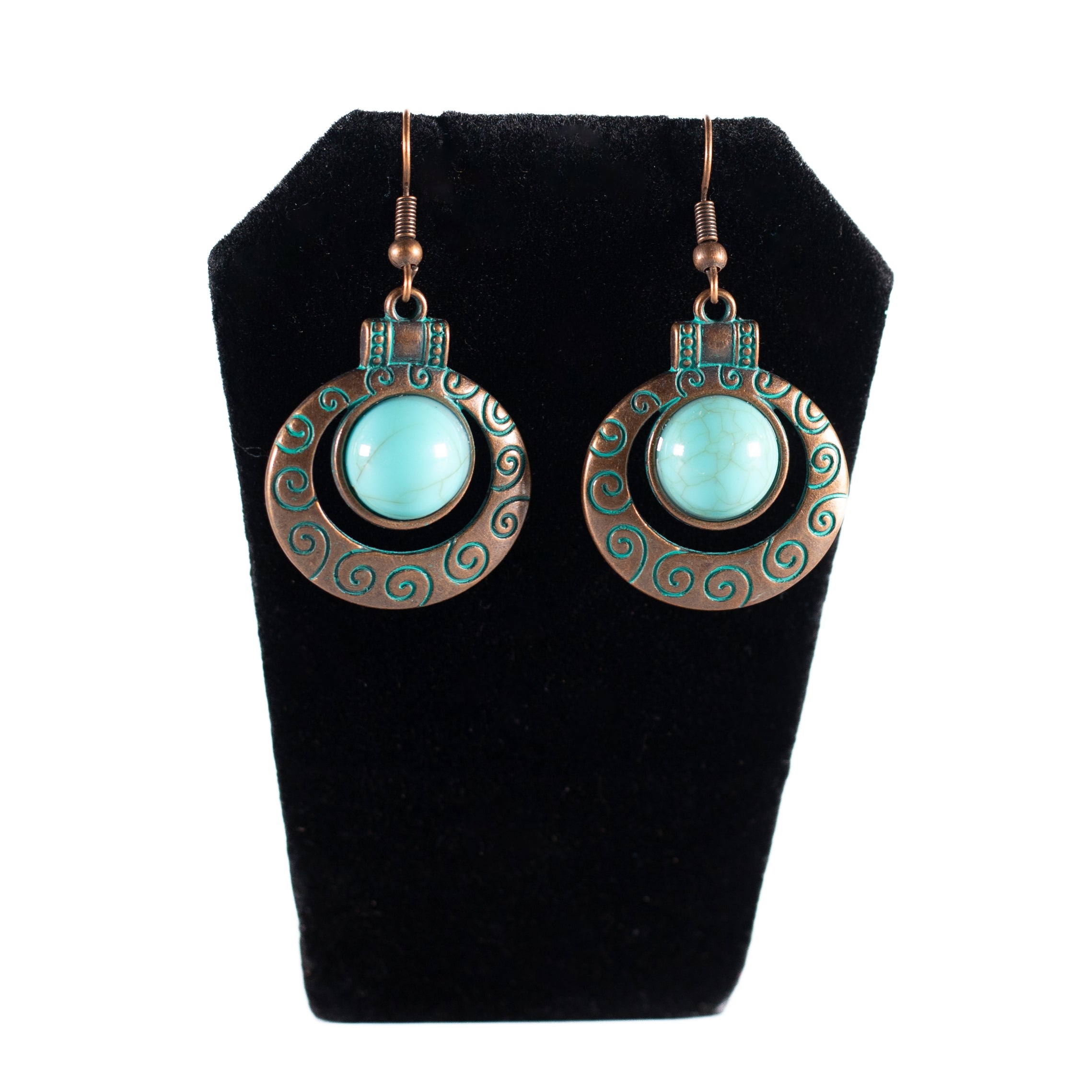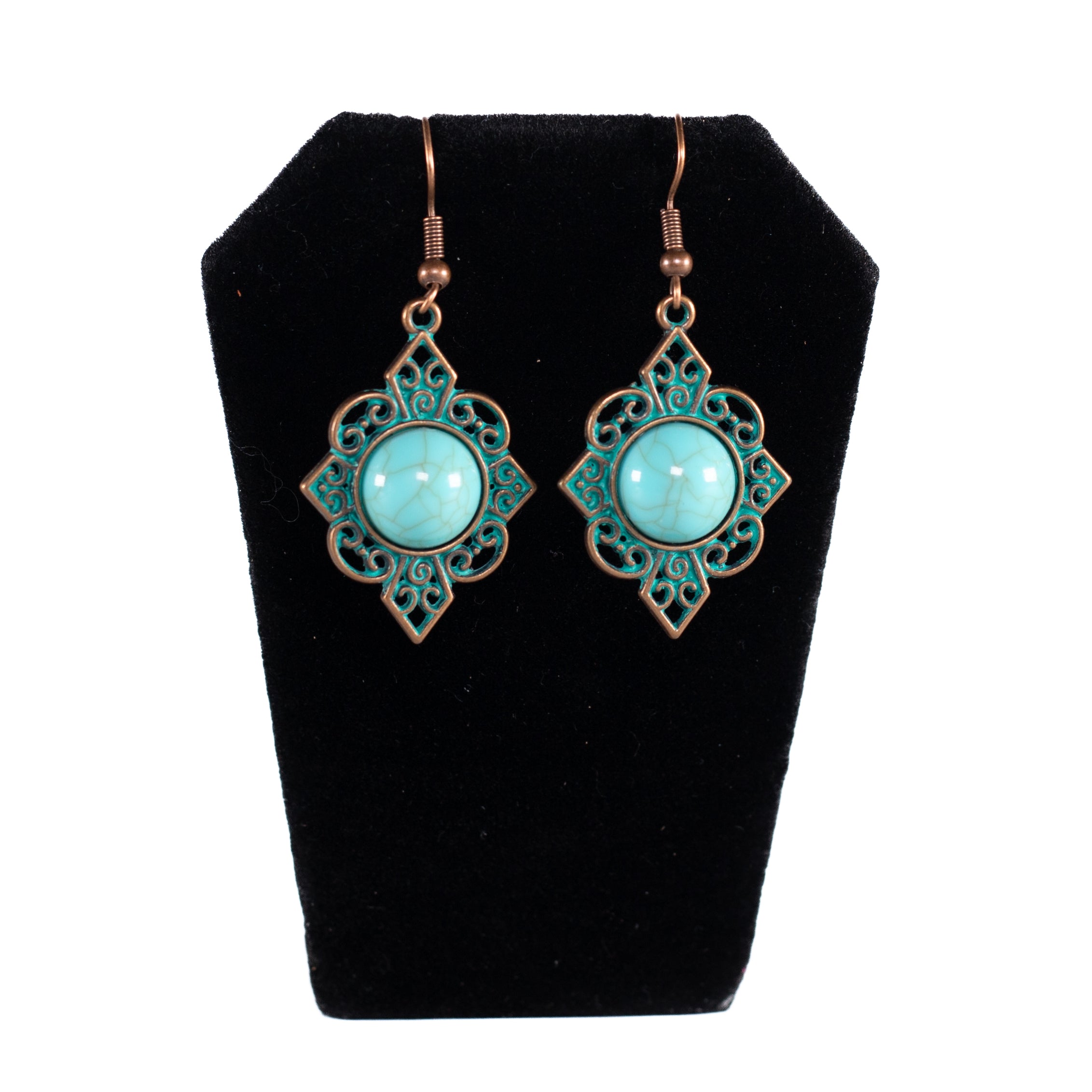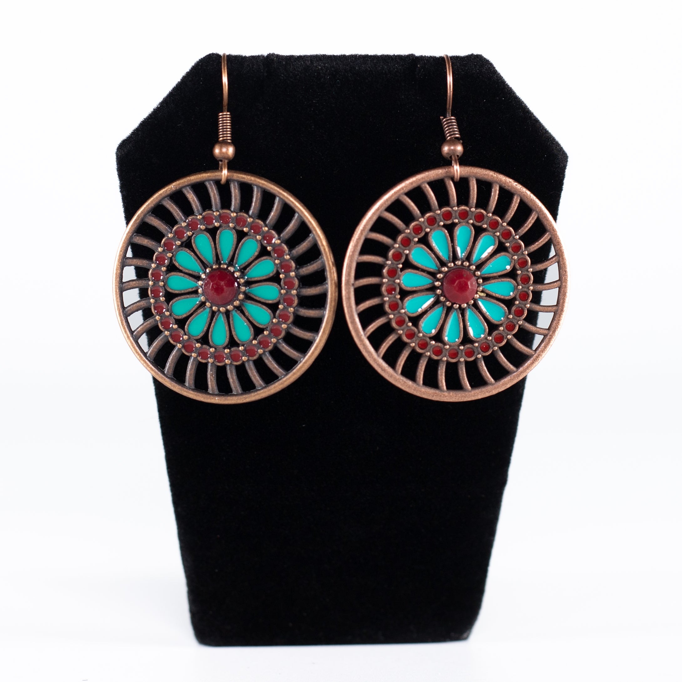 Proveedor:HOWDYLANDSaddle ScrollElevate your look with these ornate copper‐filigree medallions, each crowned by a turquoise stone at the center. Inspired...Precio habitual $15.00 USDPrecio de oferta $15.00 USD Precio habitualPrecio unitario por