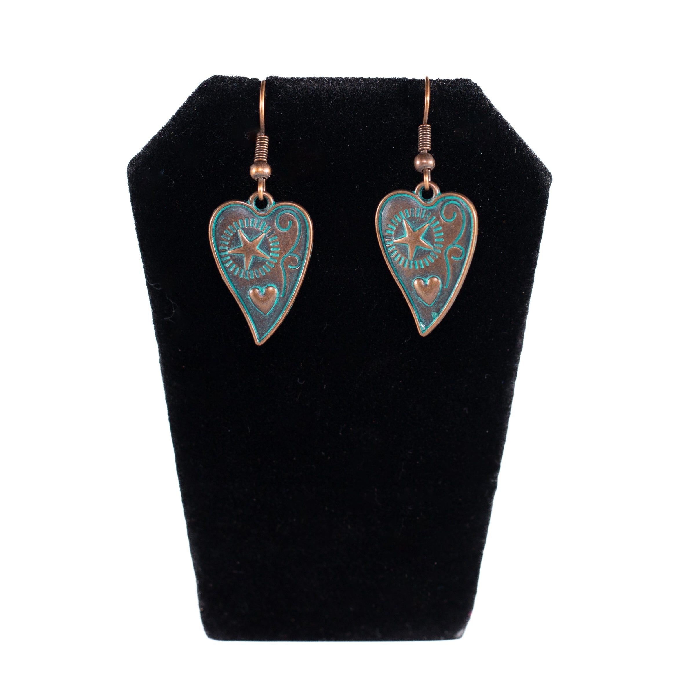 Proveedor:HOWDYLANDLone Star HeartCelebrate your western roots with heart‐shaped copper charms, engraved with a star and subtle scrollwork. The teal patina...Precio habitual $15.00 USDPrecio de oferta $15.00 USD Precio habitualPrecio unitario por