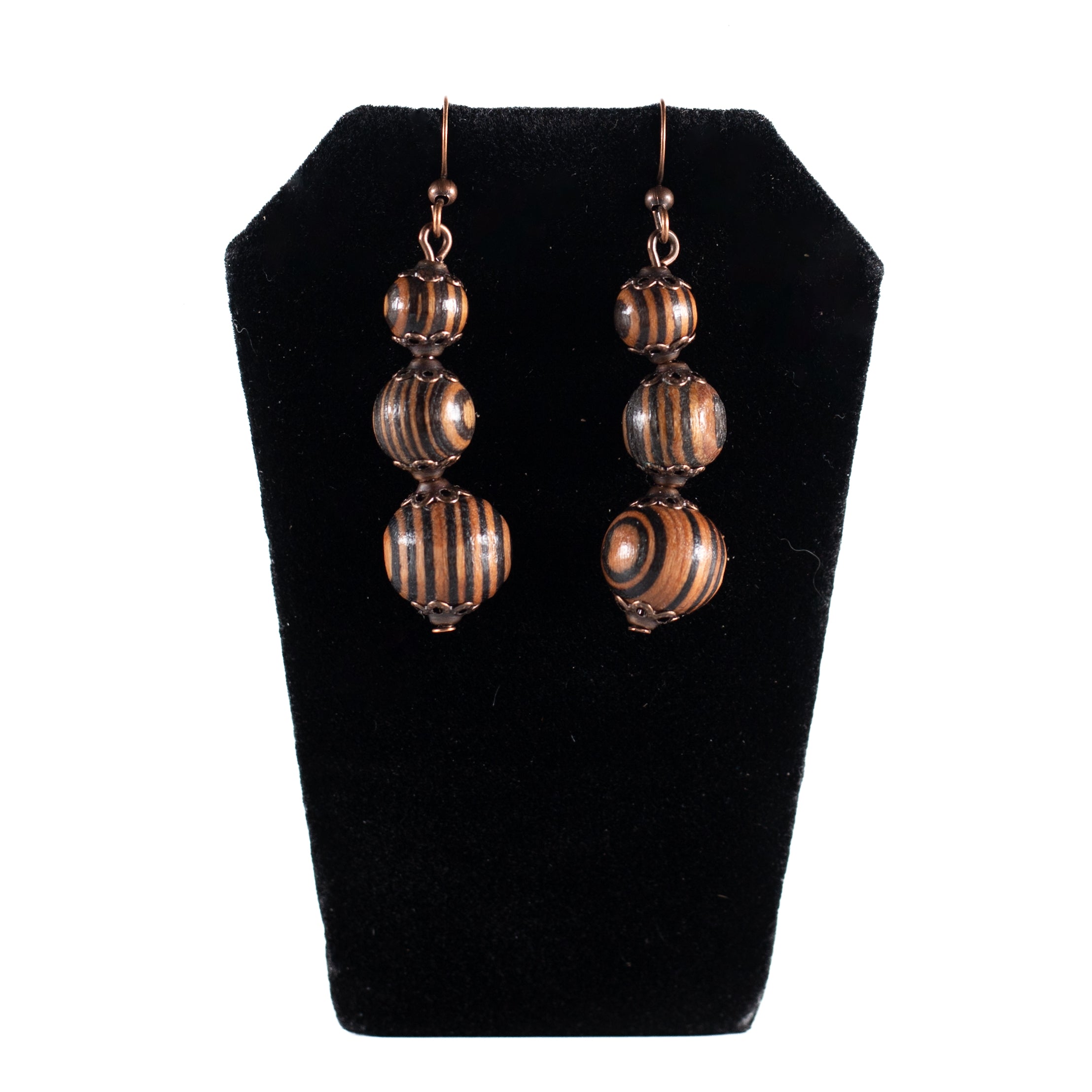 Channel rugged elegance with our Saddle Stripes earrings. Triple‐stacked wooden beads showcase rustic stripe patterns, complemented by antique...Precio habitual $15.00 USDPrecio de oferta $15.00 USD Precio habitualPrecio unitario por -