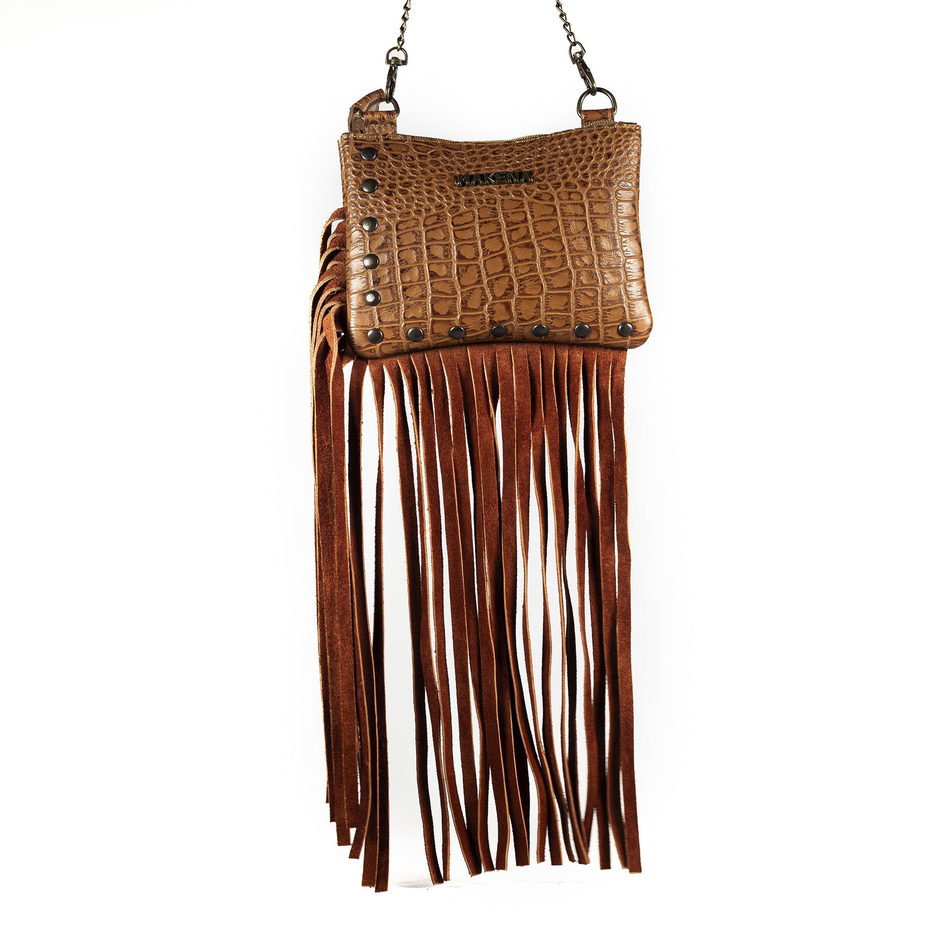 • Los detalles de flecos combinados con detalles tachonados añaden un toque único y elegante.