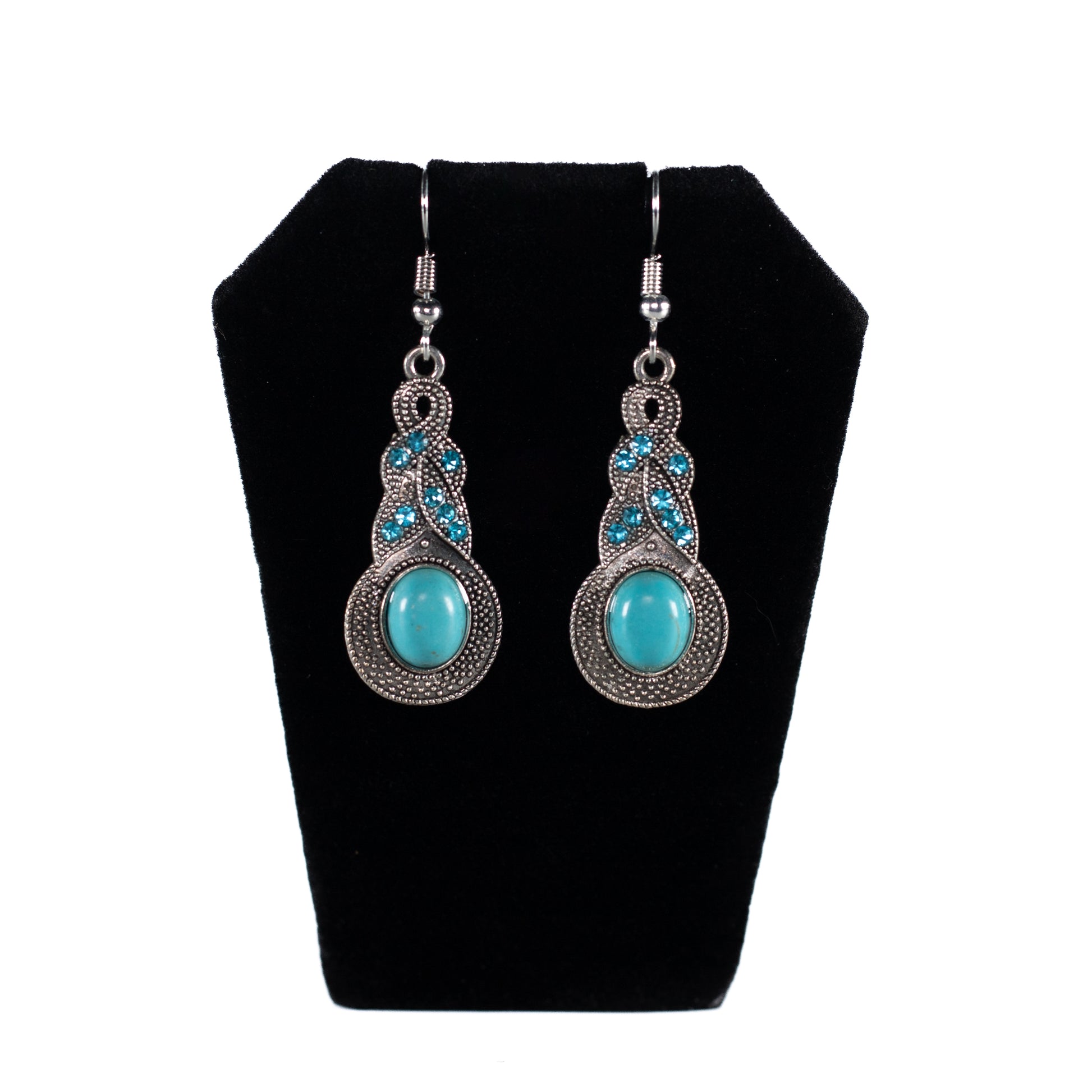 Embrace a swirl of southwestern style with these silver earrings featuring a vibrant turquoise stone. Lightweight and eye‐catching, they add a pop of color to any outfit—from denim to dresses.